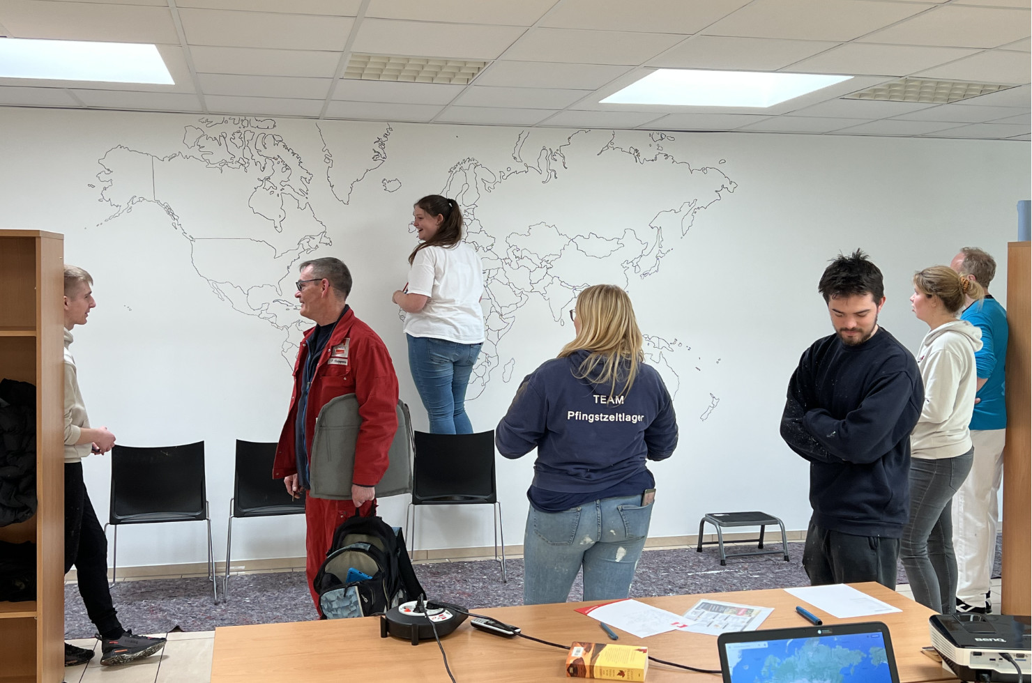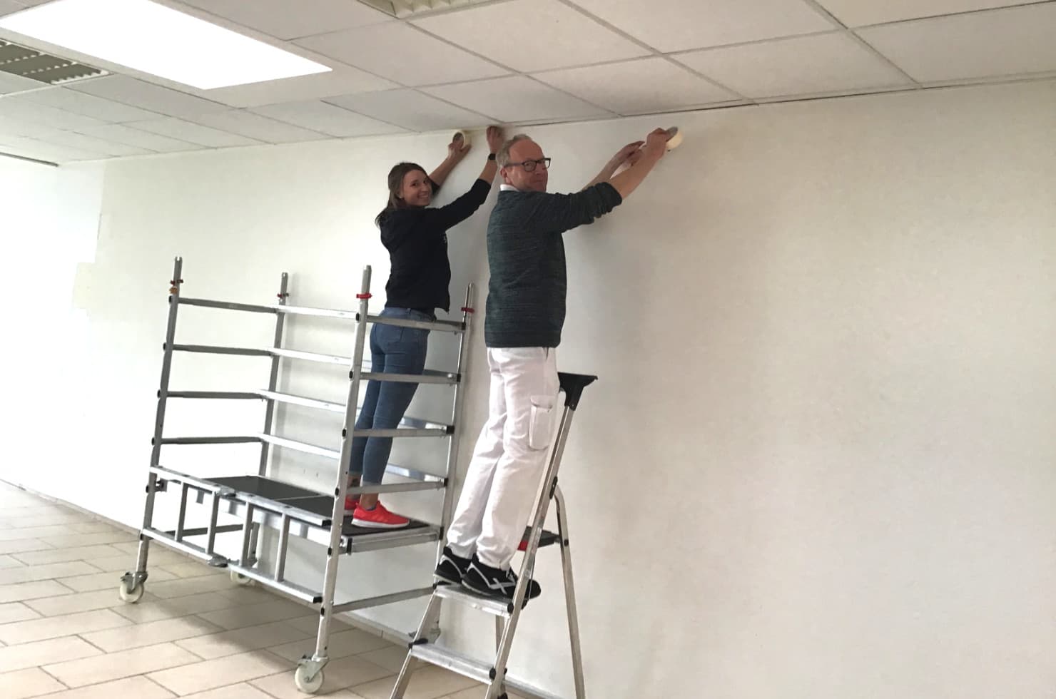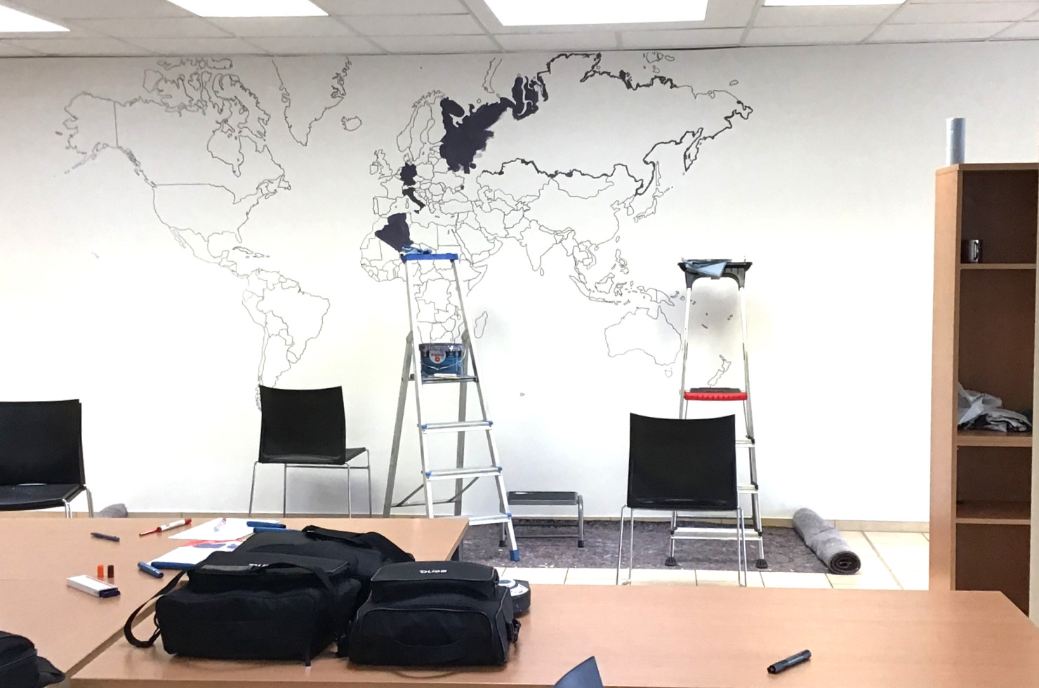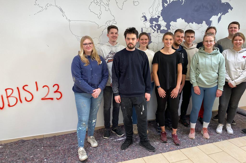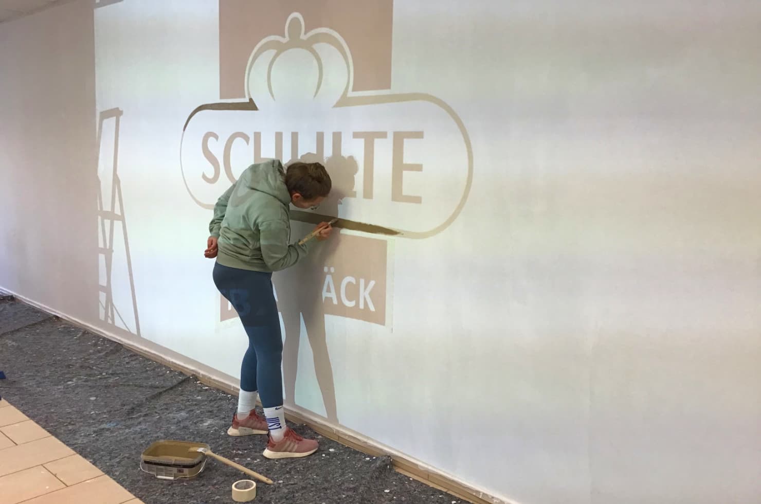 Am Freitag, den 24. März kamen unsere Azubis zu einer nicht alltäglichen aber kreativen Aufgabe zusammen: Der Verschönerung des Pausenraumes. Die Tische wurden neu arrangiert und die weißen Wände erhielten durch fleißige Hände ein großes Schulte-Logo auf der einen und eine Weltkarte auf der anderen Seite des Raumes. Auf der Weltkarte wurden dabei all diejenigen Länder hervorgehoben, aus denen die Mitarbeiter von Schulte stammen. Es sind bereits 25 Länder:
