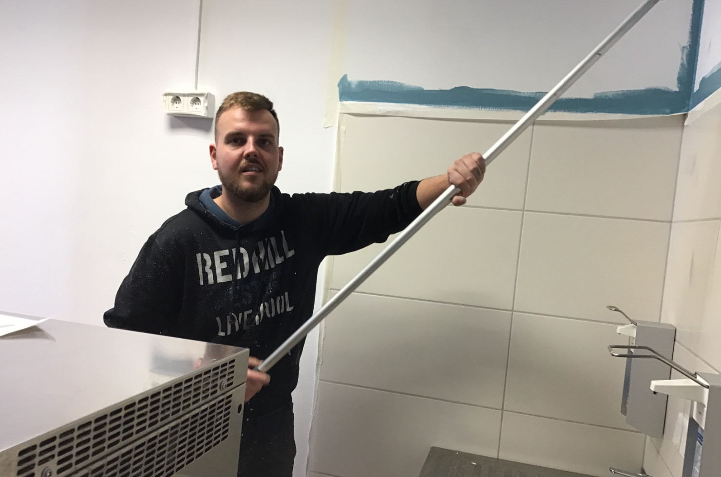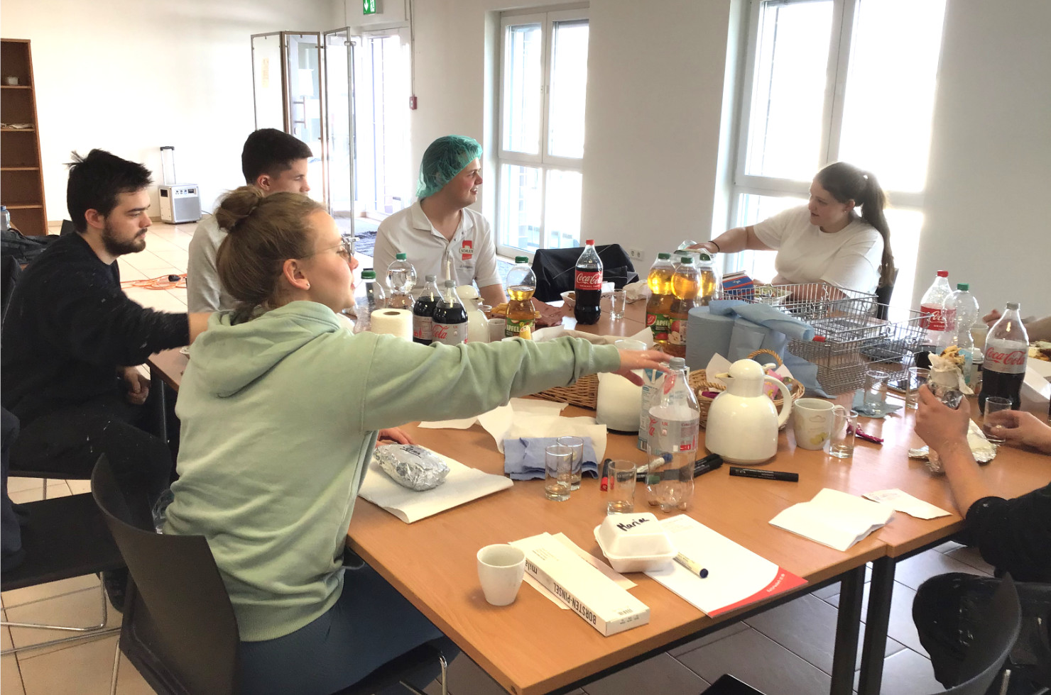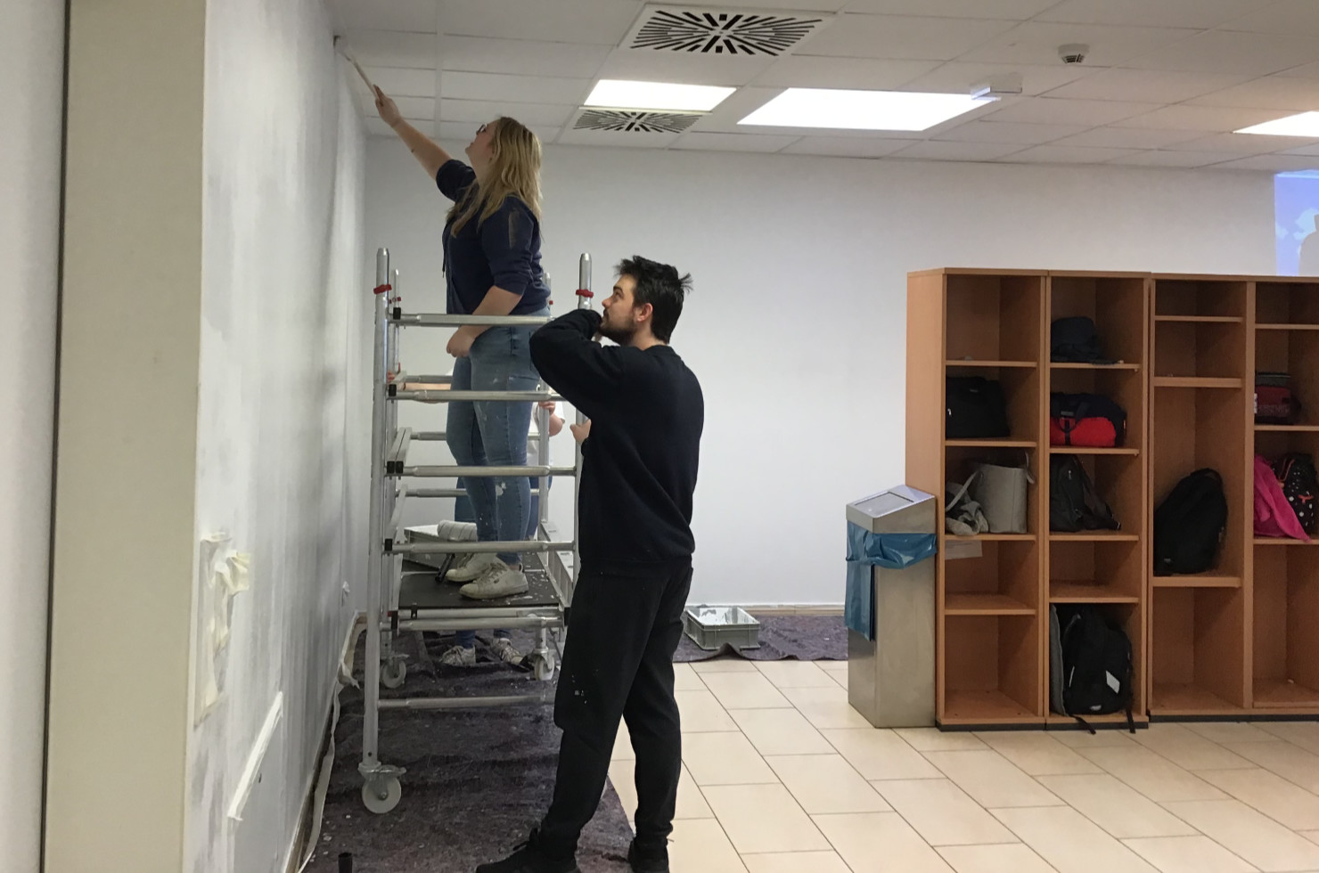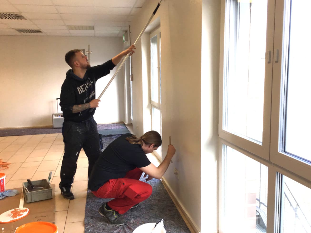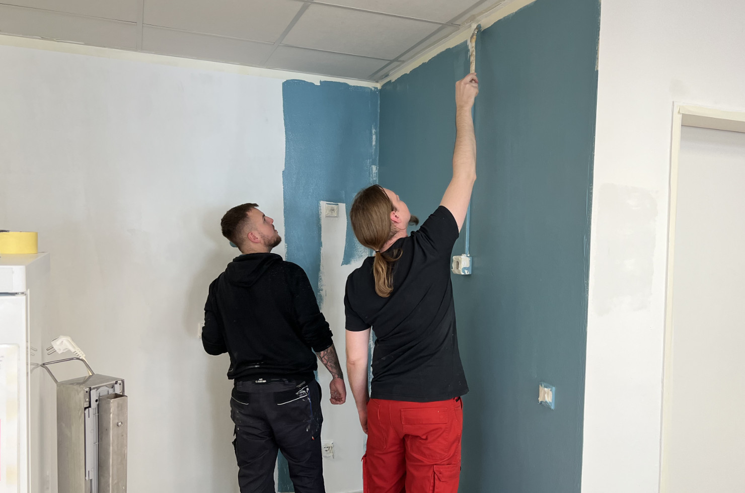 Wie zu sehen, griffen auch die Ausbilder zum Pinsel. Nach professioneller Fertigstellung der beiden Werke konnte der neu gestylte Pausenraum direkt eingeweiht werden.